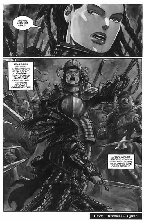 That can be very immersive, but if it’s too real, then depending on the circumstances, there are issues, too. Even with the amazing special effects available to film today; the photographic nature of the media can contradict or fight itself. Take as an example, the last scene in the Universal Pictures’ film The Mummy Returns, starring Brendan Fraser, Rachel Weisz and Dwayne "The Rock" Johnson, who plays the Scorpion King. In the climatic conclusion (apologies, if you haven’t seen the film) Johnson’s face is embedded on a computer generated giant scorpion. In an interactive game, where everything is rendered, the effect would have been plausible, if not striking, but even the slightest miscalculation in the integration of a simulated live face on the completely rendered scorpion body will pull the viewer out of the immersive realm and back into the real world, just enough to say – "hey, that’s not really the Rock." The photographic level of film demands more from special effects than a comic book or interactive game. The fantasy element has always been one of the attractions of the comics, and the reason many Hollywood films are using that same formula. It works, and not just for superhero characters, because The Mummy Returns symbolizes the outlandish imagery that was once exclusive to the comic artist’s talent and imagination.
