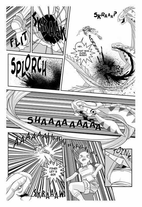 What makes this page more Japanese Manga influenced is how the action is cut up into quick snippets of images. Reminiscent of how an action movie might be cut, followed by larger panels of "frozen action" or action enhanced by speed lines.