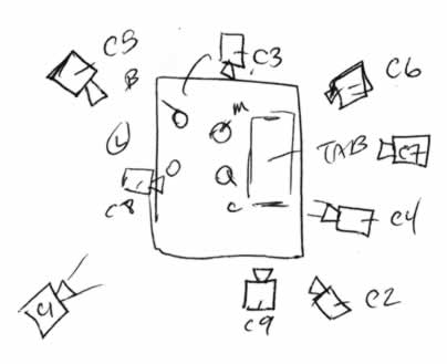 They made the jump to analog video and now digital video, where they took a local university radio show called Ways of Knowing and decided to add visuals to the storytelling. The filmmaking started even before the film was being shot, with Gabel's personal interpretation, which began to foster some exciting imagery. "Then once I started to storyboard, where I had to take a bit of reality into account (see the film still of Ways of Knowing in the shot section of Chapter 6 or at www.reelradicals.com). "One of the shots I envisioned was a shot of the two characters – from above them looking straight down – as if the room was 28 feet high and the camera is very high up and maybe descending on them slowly. That would work in a big budget film, a game or a comic book, but not in someone's borrowed office." Gabel filtered more of his original views through a "practicality meter," knowing that there was a limited budget and no professional film set. The fixed room was limited to actual physical space that was available, so he decides to enhance the experience with symbolism. "For example, one of the characters is a psychologist and the other character is a guy who believes he's an alien."