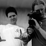When shooting Way of Knowing (the film short is online at www.reelradicals.com), 99% of the shots were on a tripod. There are a few scenes that they expereimented with a handheld shot, like NYPD BLUE, but it was either a really short scene or they wanted a slightly kinetic look and feel. At one point in the film, there are some flashback scenes with a description of an alien abduction and they chose to intercut the description of the alien abduction with scenes of aliens coming out of a UFO. "That's the stuff that was done with handheld, said Chris Gabel. "Most of the film was done with a tripod. It gives a steadier image and if we wanted to move the camera, we'd use either zooms, which we tried to avoid or a dolly shot." They ended up building a dolly and bringing it into the small office where they were shooting. The dolly had to be big enough for the tripod and the camera operator – slightly bigger than a child's wagon. Gabel confessed it was a challenge fitting the dolly into the tiny office, let alone using it, but if the dolly proved to be difficult, they use intercut scenes, close up, then medium shots to achieve the same effect. Similar to the panel structure of comics – a dolly shot, sans the motion.