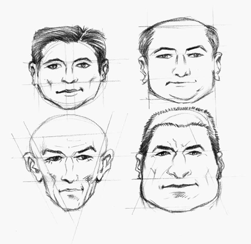The head is usually divided into thirds, and by giving the head a specific shape, it helps to continue the resemblance of that character throughout the frames.