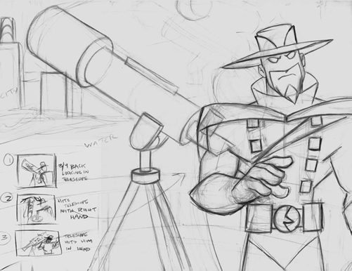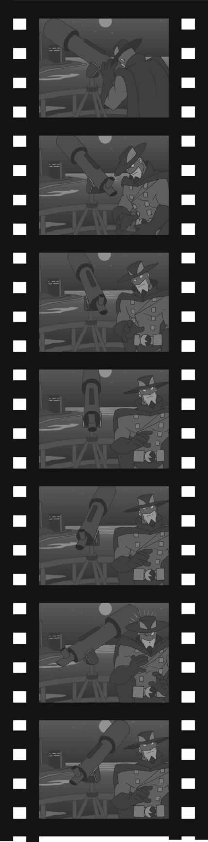 Here' the remarkably similar process in the production of comics —the same elements are used in each visual communication media, all of which use the most dynamic imagery to tell the story, or the "extremes." The real difference is in the amount of information projected within each "frame."