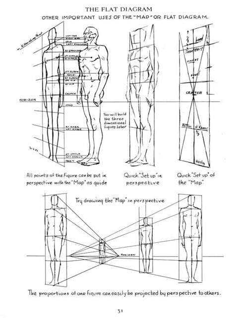 Andrew Loomis was a popular fashion artist in the 1930s and 1940s and also authored a number of highly detailed books on drawing the human figure. All of those books are currently out of print. Penguin owns Viking Press, which was the original publisher of these works. The book Figure Drawing for All It's Worth is a fantastic study of the human figure and is highly recommended by the likes of Neal Adams, John Byrne and Walt Simonson. Loomis was the first artist to publish the proportional charts all illustrators, from comics to fashion designers to storyboards to interactive games, use today.