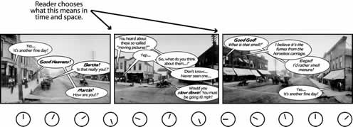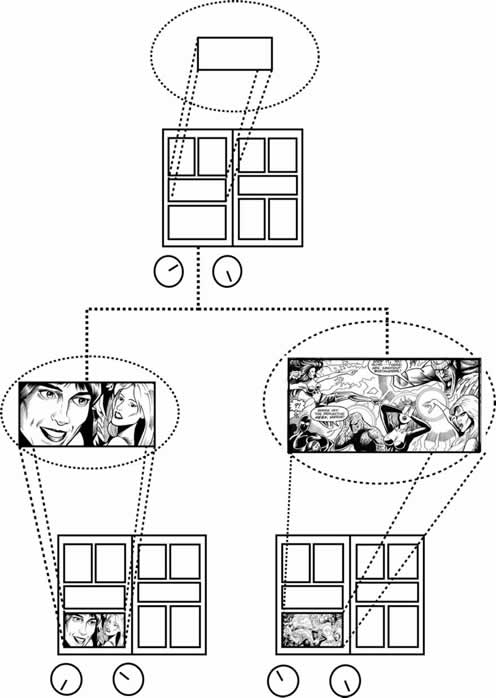 Similarly, the design of a page of sequential art, by controlling the position and content of a page and its panels, applying quick cuts creates a certain experience and message when done properly (see Figure 8.6).