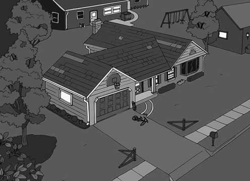 Here's an example of setting up the scene for later. In the background a public telephone is visible, which is used later to call the police.